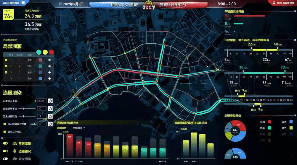 世纪高通交警大数据可视化平台融合了世纪高通互联网路况、天气和交警的卡口、事务、勤务等多源大数据, ,,,,,, ,对都会交通运行指数、平均行驶速率、拥堵里程比、在途量、清静态势、警力笼罩率 6 大交通生命体征举行实时监控。。。。 。该平台包括七大营业功效:交通路况实时监测、交通运行状态评估、交通研判服务、交通指挥调理、交通设施羁系、信号灯评价和立异服务。。。。 。
