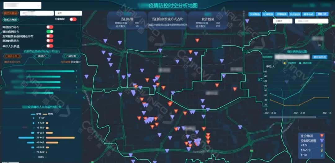 疫情时空剖析平台 “疫情看板”功效, ,,,,集成多个资讯转达、数据统计工具, ,,,,形成包括多种疫情信息的综合门户, ,,,,普遍应用于政府、防疫部分等指挥调理场景。。。。。“疫情看板”功效通过数据可视化, ,,,,快速相识以确诊病例为焦点的防控圈层, ,,,,及新增确诊、累计确诊、发明方法、区域排名、确诊年岁漫衍等多维数据信息, ,,,,全方位掌握疫情生长形势, ,,,,并通过确诊曲线相识生长趋势, ,,,,辅助防疫指挥部快速响应突发病情。。。。。