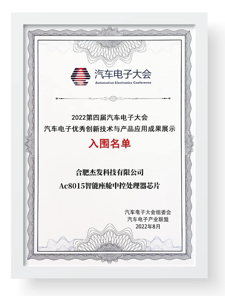 本次大会,, , ,,,,杰发科技首颗智能座舱中控处置惩罚器芯片AC8015入围“汽车电子优异立异手艺与产品应用效果奖”,, , ,,,,以一定AC8015智能座舱芯片领先的手艺和普遍的应用。。。 。。。 。。AC8015是杰发科技首款自主研发的车规级座舱SoC芯片,, , ,,,,可用于开发一芯多屏入门级座舱、车载信息娱乐系统、Display Audio、3D液晶仪表等座舱域产品。。。 。。。 。。AC8015已与海内外十余家系统供应商合作,, , ,,,,累计出货量数十万颗,, , ,,,,量产车型十余款。。。 。。。 。。