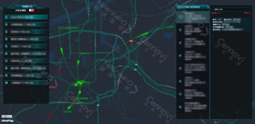 疫情爆发初期, ,,,,短时间内基于流调信息厘清熏染链条难题重重。。。。。世纪高通疫情时空剖析平台通过对重点撒播链举行时空关联剖析, ,,,,以迁徙图形式在地图上直观泛起撒播源、熏染职员(小区)、患者运动轨迹及病发前后的可能接触点, ,,,,助力疾控职员快速锁定管控规模, ,,,,掌握疫情撒播路径和多链条之间撒播关系。。。。。